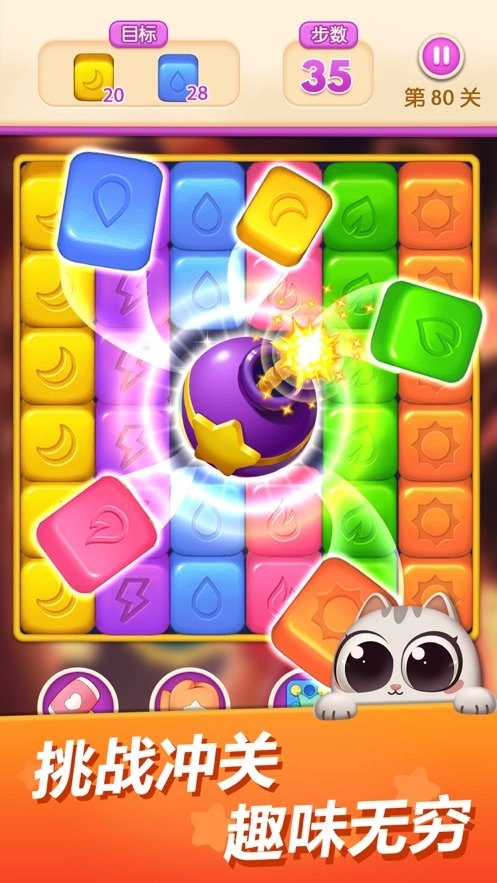 3.欢乐爆破的百变方块充满奇妙趣味,经典的消除玩法能在你感到无聊时为你带来欢乐。