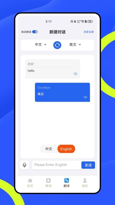 3、支持新建翻译对话,并能自由选择粤语或英文等语言进行翻译,享受贴心的服务。