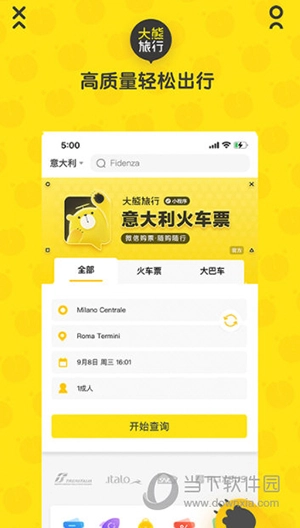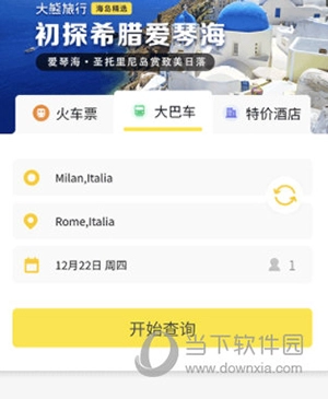 1、打开大熊旅行应用,在首页找到“火车票”或“大巴车”选项并点击,随后点击“开始查询”按钮;