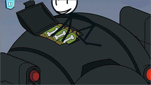 4、要是玩家未能完成五角星,就会被关进监狱。火柴人在监狱里成功越狱,随后进入机器人设备室。此时,玩家可以选择打包机器人,或者选择怼人鸭。