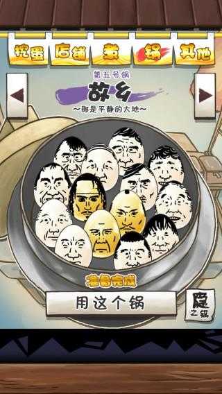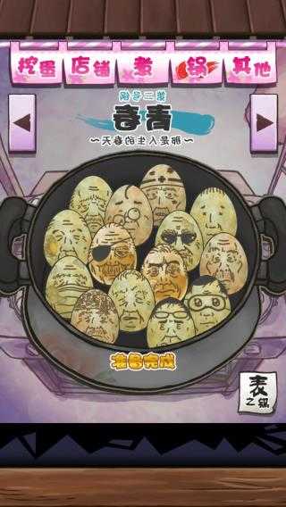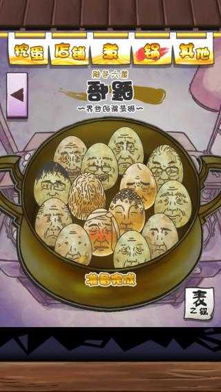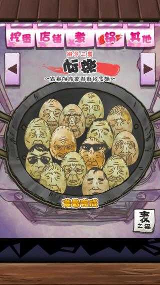 1在游戏里,玩家得耗费些时间,把各类盐配料进行搭配,用来煮熟鸡蛋。等鸡蛋煮好出锅,只需用手指在屏幕上轻轻滑动,将鸡蛋剥开,一张独具个性的大叔脸便会赫然出现在你眼前。