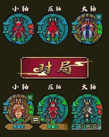 这场比赛规则相当简单,采用的是三局两胜制。每场比赛,你仅能派出三只蛐蛐参赛,这三只蛐蛐分别为小轴、压轴和大轴。在此,给大家分享一个实用小技巧:要是把实力强劲的蛐蛐安排在小轴和压轴的位置上,只要这两只蛐蛐赢得比赛,即便后续面对对手大轴的蛐蛐,哪怕它再厉害,你依然能够赢得整场比赛。原因很简单,只要你有两只蛐蛐获胜,系统就会判定你赢得比赛。