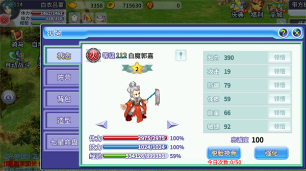 练级方面主推风火两系武将,雁MM、关羽、蒋济和赵云这几位可以作为PK武将重点培养,其他武将正常转职即可,没必要浪费强化丹、领悟丹这类材料。