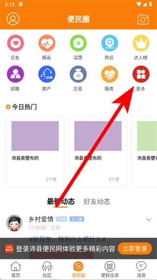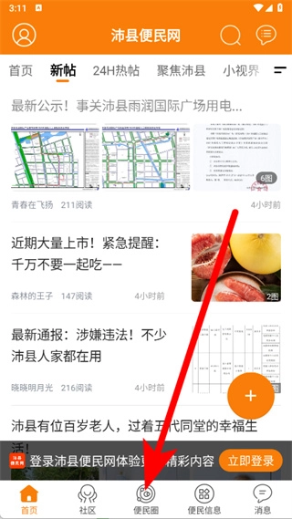 首先打开沛县便民网,接着点击页面底部导航栏中的便民圈选项,随后即可进入便民圈页面。